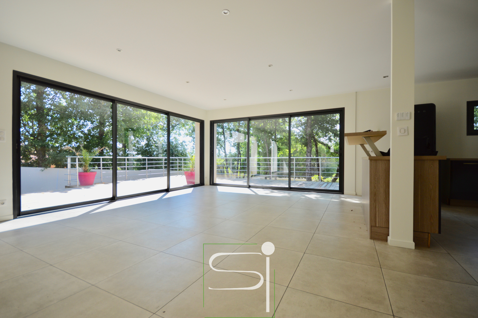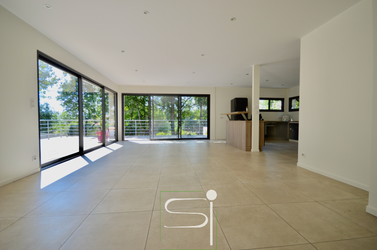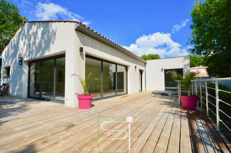 Breuillet - située au coeur des Chênes et à distance de marche du Centre-Bourg, le Cabinet Simonet Immobilier vous fait découvrir cette villa par son architecture non conventionnelle est intégrée dans le paysage verdoyant. Elle vous offre une belle pièce de vie lumineuse donnant sur une terrasse avec vue dominante, une cuisine ouverte équipée, 3 chambres dont une suite parentale équipée d'une salle d'eau et d'un dressing avec accès direct sur la terrasse et le jacuzzi, buanderie, salle de bains et un wc. Un grand garage et une cave complètent cette agréable villa. Vous bénéficierez d'un jardin clos et boisé d'environ 1200m². www.simonet-immobilier.com.